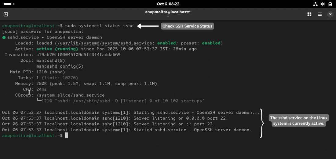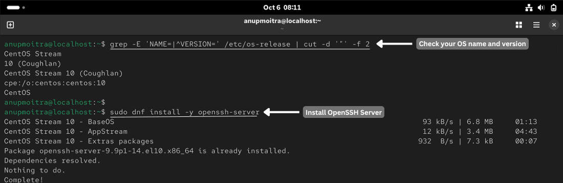 # (Older RHEL or CentOS may use: sudo yum install -y openssh-server)