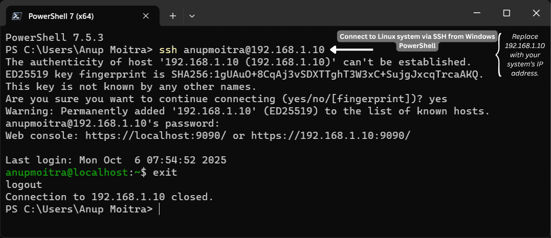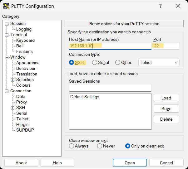 - Windows 10 or 11 OpenSSH client or PuTTY